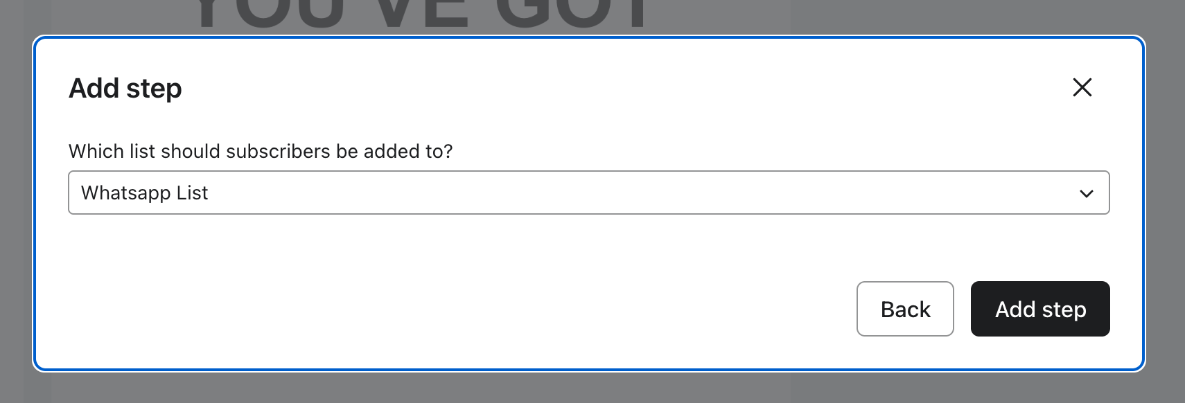 3. Choose a list to add Whatsapp Subscribers to and name it Whatsapp Subscribers or Whatsapp List. This list has to be created before your pop-up edits start