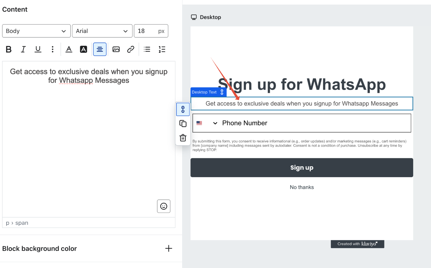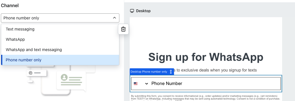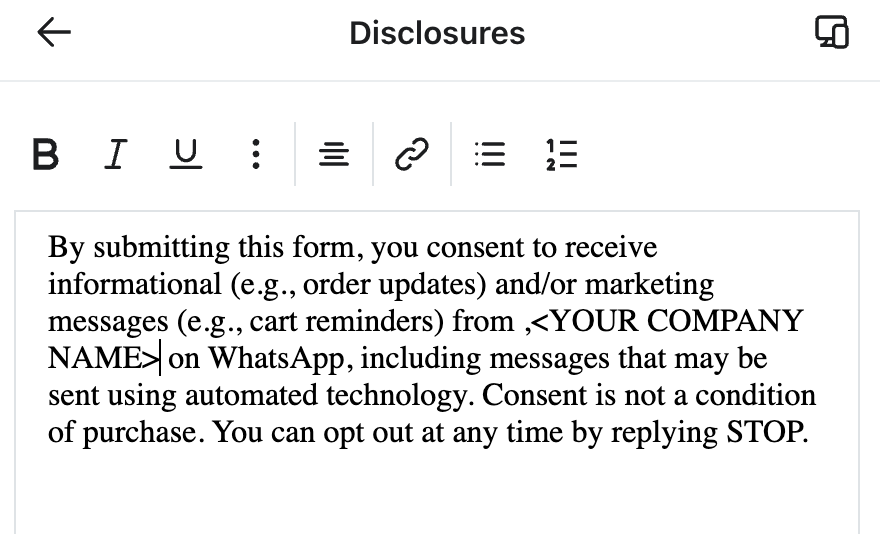 5. Change the sub headings and disclaimer text to reflect the Whatsapp specificity
