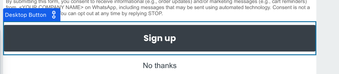By submitting this form, you consent to receive informational (e.g., order updates) and/or marketing messages (e.g., cart reminders) from <your company name> on WhatsApp, including messages that may be sent using automated technology. Consent is not a condition of purchase. You can opt out at any time by replying STOP.