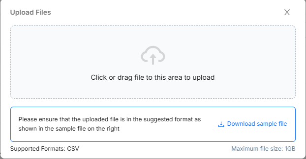 Click on “Click or drag file to this area to upload”