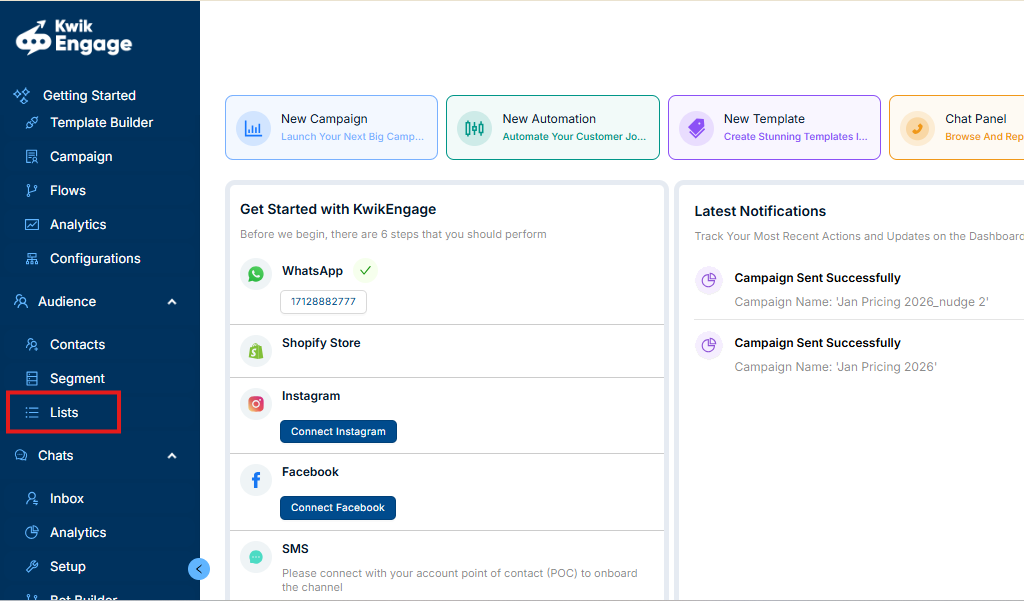 Access the platform at: https://app.kwikengage.ai/